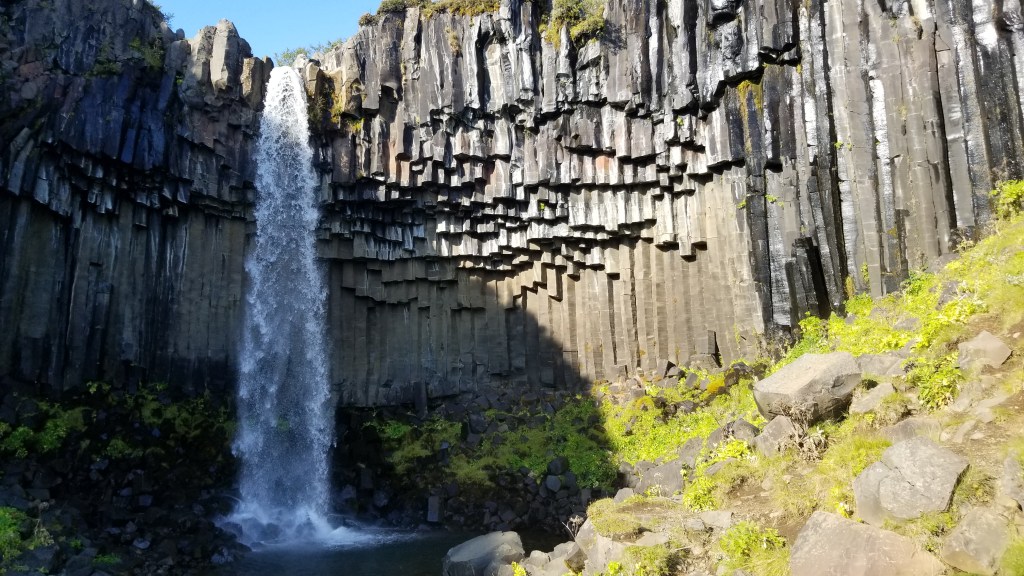 En el artículo anterior nos quedamos justo en el momento en que estábamos entrando al Parque Nacional de Skaftafell. Al llegar al campamento fuimos inmediatamente a conocer la catarata Svartifoss, camino que requiere de un poco de esfuerzo porque es todo en subida.. pero cuando llegas sentís que recibiste un premio ya que es muy bella. El tiempo estaba precioso hasta algo caluroso y eso hizo todo mucho mas agradable, teniendo en cuenta que habíamos tenido bastante viento y frío.