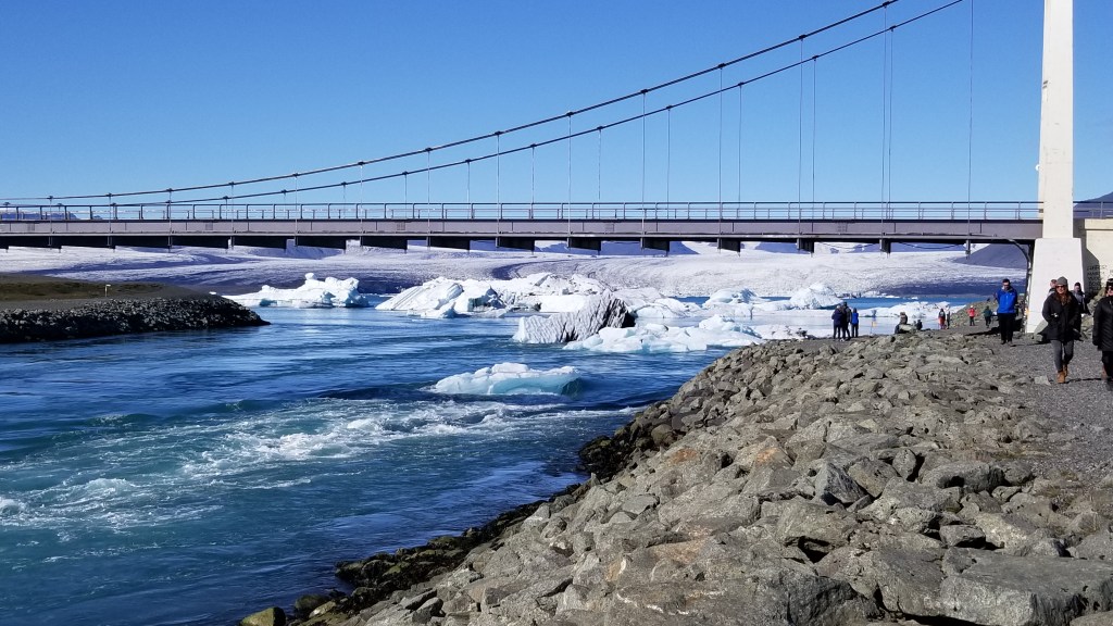 Al día siguiente emprendimos la caminata hacia el glaciar Vatnajokull que está dentro del camping. Es muy impresionante tomar tu desayuno, salir a caminar unos 20 minutos y encontrarte con semejante glaciar. Si algo tiene Islandia es que hay glaciares y cataratas por todos lados y no dejas de sorprenderte de las diferentes formas y tamaños de cada uno de ellos. Si vas con más tiempo podes contratar una excursión para caminar sobre el glaciar, experiencia que te recomiendo enfáticamente, nosotros la hicimos en Argentina en el glaciar Perito Moreno https://www.argentina.gob.ar/parquesnacionales/losglaciares, y es otro lugar que no hay que perderse en esta vida 🙂
