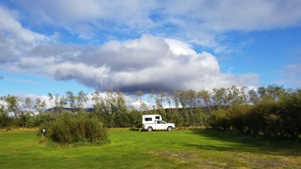 Desde alli recorrimos unos pocos kilometros y nos instalamos en Asbyrgi Camping site un lugar precioso donde podes hacer una energética caminata dentro del mismo parque. Como curiosidad te cuento que ya no había gente para recibirte porque era fin de temporada, pero las instalaciones como duchas y baños estaban listas para su uso.