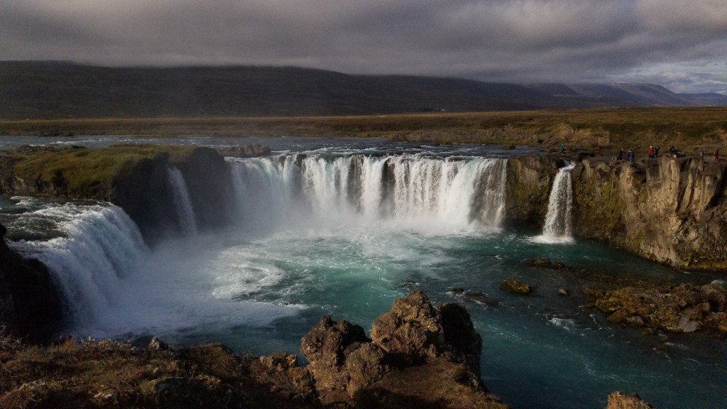 A la mañana siguiente huimos del lugar, había cerca unas aguas termales para visitar, pero como todo estaba tan lleno de gente y además no estabamos muy convencidos de tomar un baño termal nos fuimos hacia Godafoss, la que fue mi catarata favorita y que además hace honor a su nombre que es la Cascada de los Dioses. Mira algunas fotos y decime si no es verdad