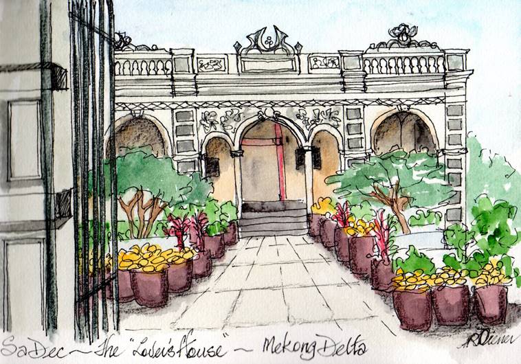 During excursions on shore from the boat, I realized that Robyn, one of the Australian passengers, was keeping a book with her drawings of the different places we visited. I love people that draw and paint so I approached her and asked her to show me her work. So beautiful. But the nicest surprise was that, after coming back home, she emailed me and gave me this beautiful present. The house of lover in Robyn Diener’s version. Lovely … I told you that was a very emotional trip.