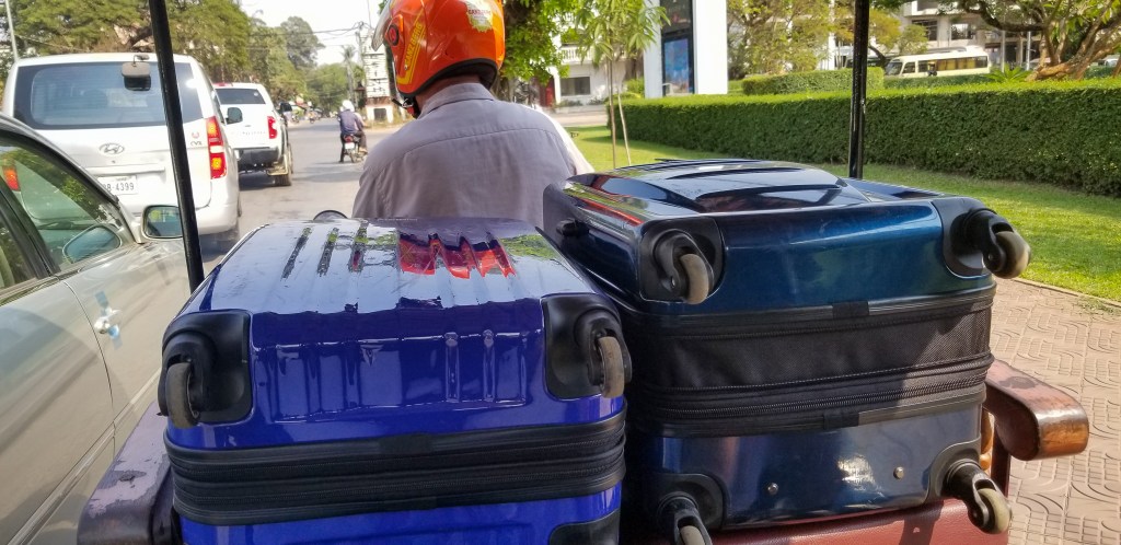Otra cosa interesante fue que todos los paseos que realizamos hacia el centro de la ciudad fueron en tuk tuk, así que eso era muy divertido y ex´ótico, de hecho hasta nuestras valijas viajaron de esa manera como ves en la foto.