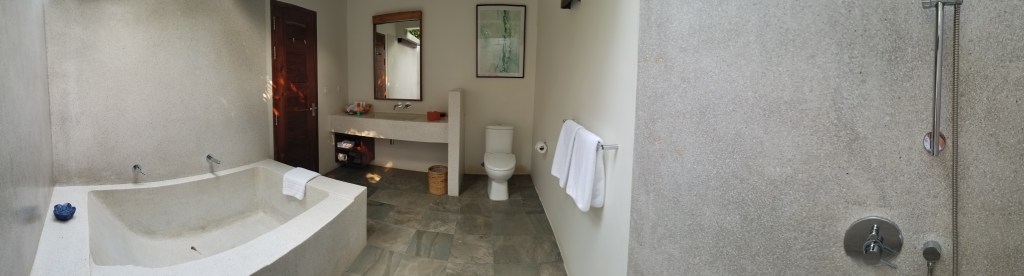 La experiencia en tierra fue buena, nos instalamos en un hotel en las afueras de la ciudad cuyas habitaciones tenían una particularidad … todos los baños estaban al aire libre, no solo la parte de la ducha sino también el inodoro… una experiencia distinta eso de sentarse «a meditar» y estar rodeado de naturaleza 🙂