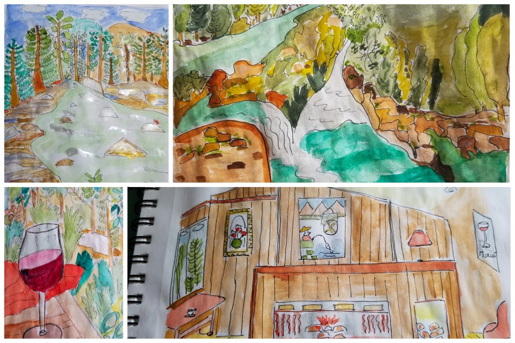 Here are my drawings, I need a lot of practice but I feel proud of them because I spent more than 40 years without encouraging myself to draw anything. So I’ll keep trying. Thanks for joining me again. See you soon.