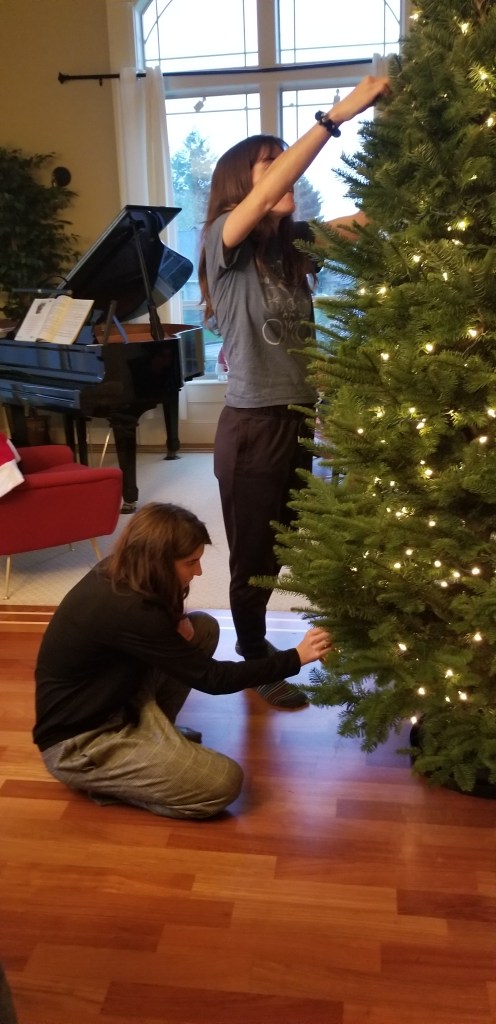 Uno de los principales fue la búsqueda de un árbol de Navidad de verdad, sinceramente la idea de cortar uno para ese fin nos dio algo de impresión pero aceptamos las reglas con un poco de recelo. Elegimos uno precioso y algo muy agradable es el aroma a pino que había al entrar donde lo armamos. Mi promesa es mantenerlo con sus adornos y poniéndole agua hasta que sus hojas se empiecen a caer aunque esto sea en agosto. Podría decir que todo el año es Navidad 🙂