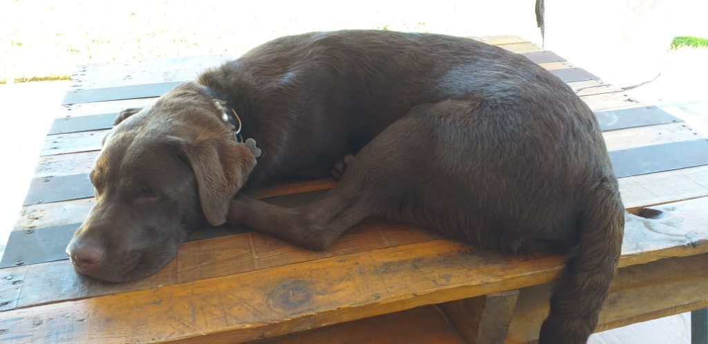 La mesa y Sánchez (mi perro) enamorado de ella.