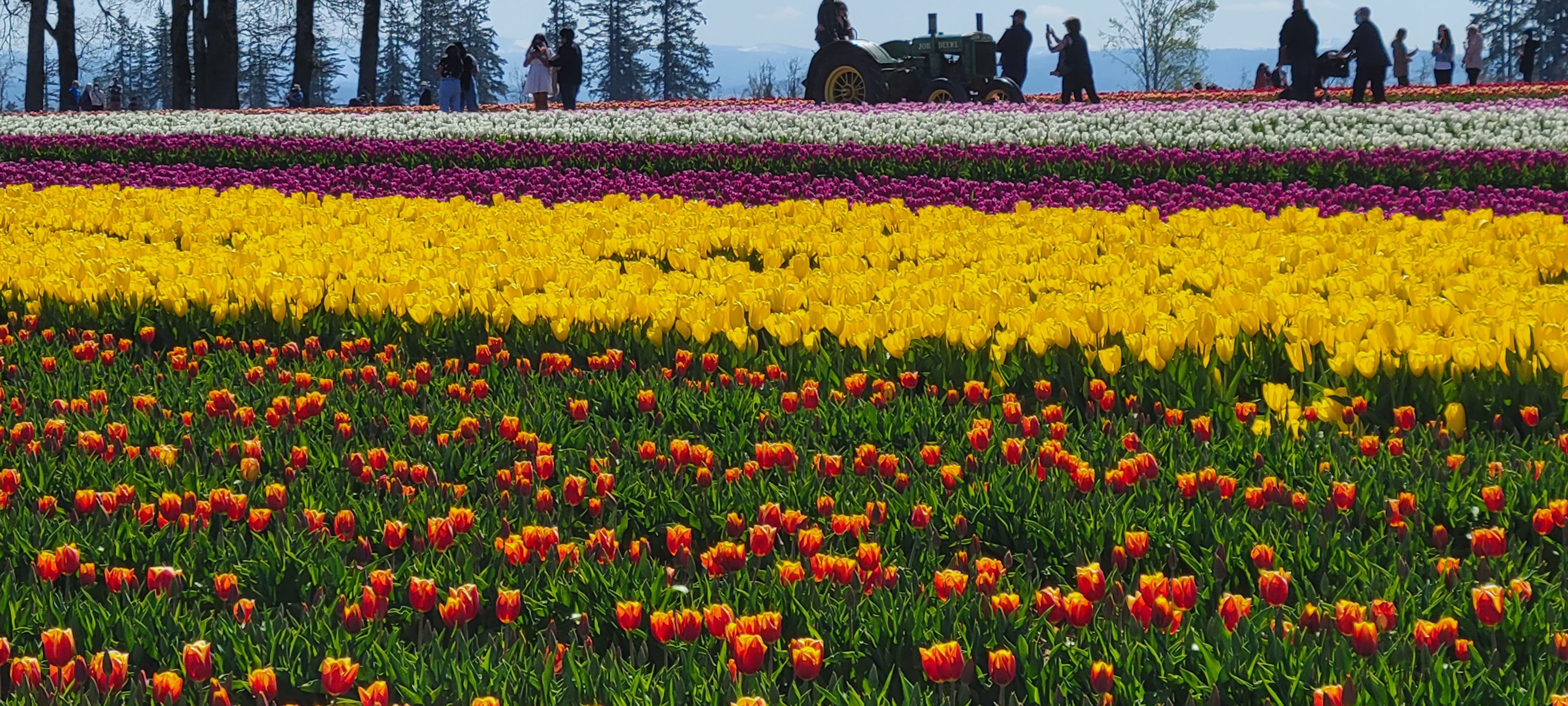 The interesting thing is that I made the discovery in one of my Panda Projects, when Joyce sent me a photo of a place called Woodland full of tulips here in Washington. That was the start, I googled and found this place called Woodenshoe in Oregon and went to visit it. I was very lucky that the day that I picked was sunny and without wind and I was able to appreciate colors and discover that there are different types of tulips (this comment is for the people of Argentina … in addition to those that appeared in a box 😉 ), perhaps you knew that, I didn’t, and that’s the beauty of looking more closely at the things that surround us.
