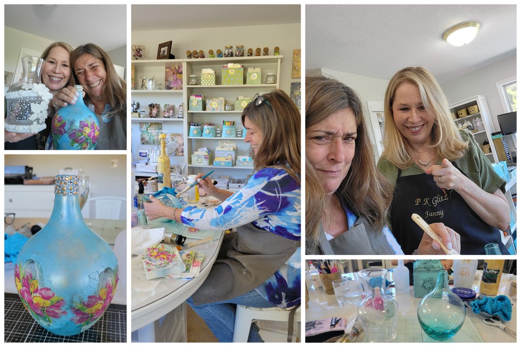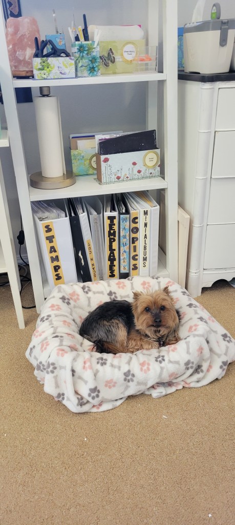 During that time, I went to many «Craft Retreats». These were intensive workshops (4 days) where we met a group of ladies interested in learning different techniques. There were so many materials! During that time I began to purchase many things that I kept and that I still have. I also went with my daughter to craft fairs where we learned countless things. All this was done between working, maintaining a house, raising my grandson and taking care of the puppies and other animals that found their way to our house.