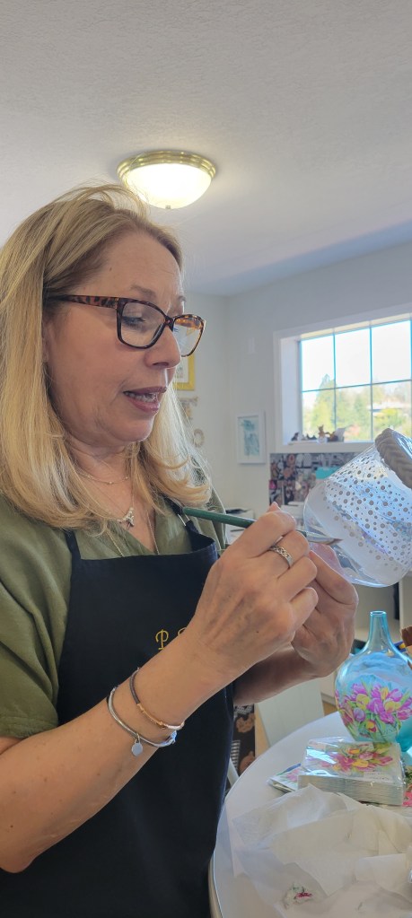 En el 2015, con mi esposo nos mudamos al PNW. Ahí comencé con un nuevo hobby que fue reciclar muebles y refaccionar ambientes. Ahí conocí a mi querida amiga Laura, tuvimos unas muy alegres sesiones de arte cuando éramos vecinas. En enero del 2020, justo antes de que el mundo se fuera a pique con la pandemia, nos mudamos para Portland. Durante la cuarentena como estábamos aislados hasta pinté mi casa!! 🙂