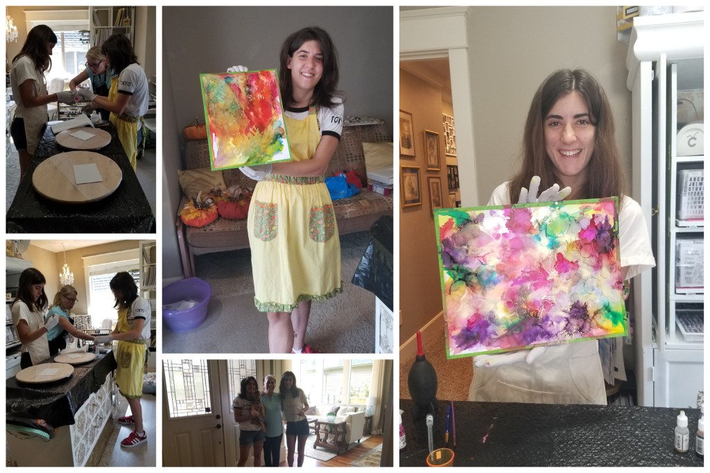 También hace un año y medio compartí una actividad de pinturas al alcohol con sus hijas Sofía y Paula.