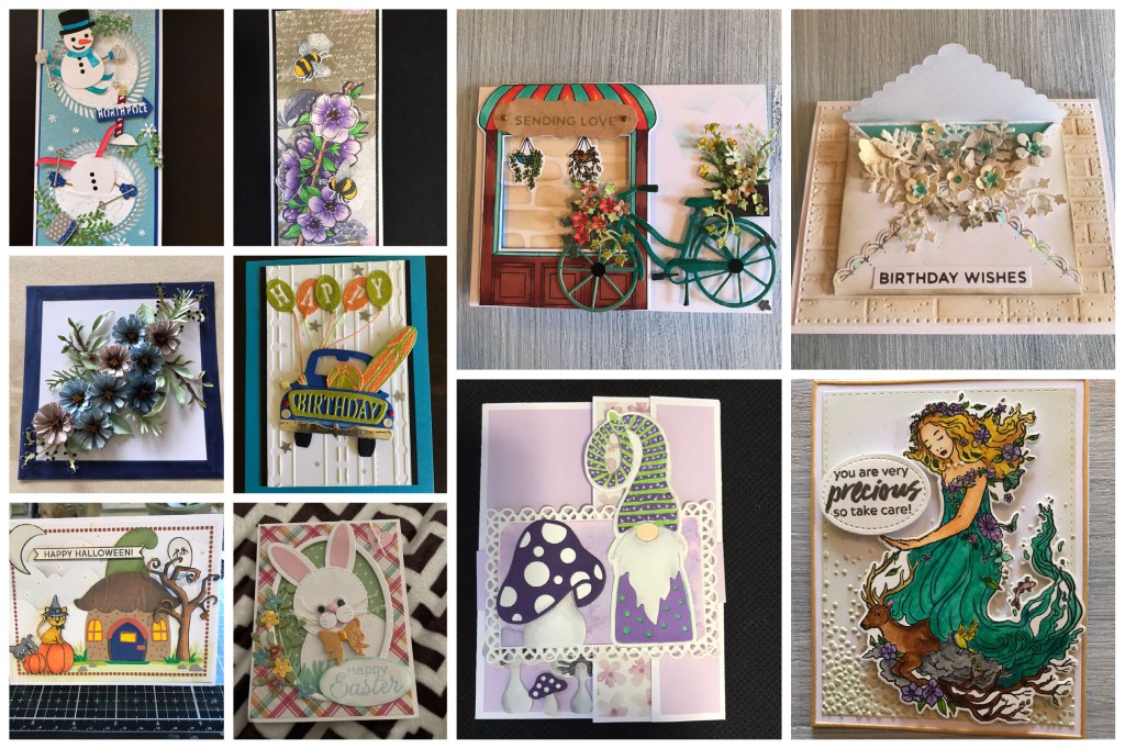Then I decided to make cards for any occasion. That became my biggest hobby. Today I am remembered in the family for not forgetting a birthday, anniversary, graduation, Christmas, Easter, Valentine’s Day and on sad occasions sympathy cards. Over time I joined some clubs where every month they sent me a box full of things like stamps, dies, beautiful papers and other things. That helped with my creativity.