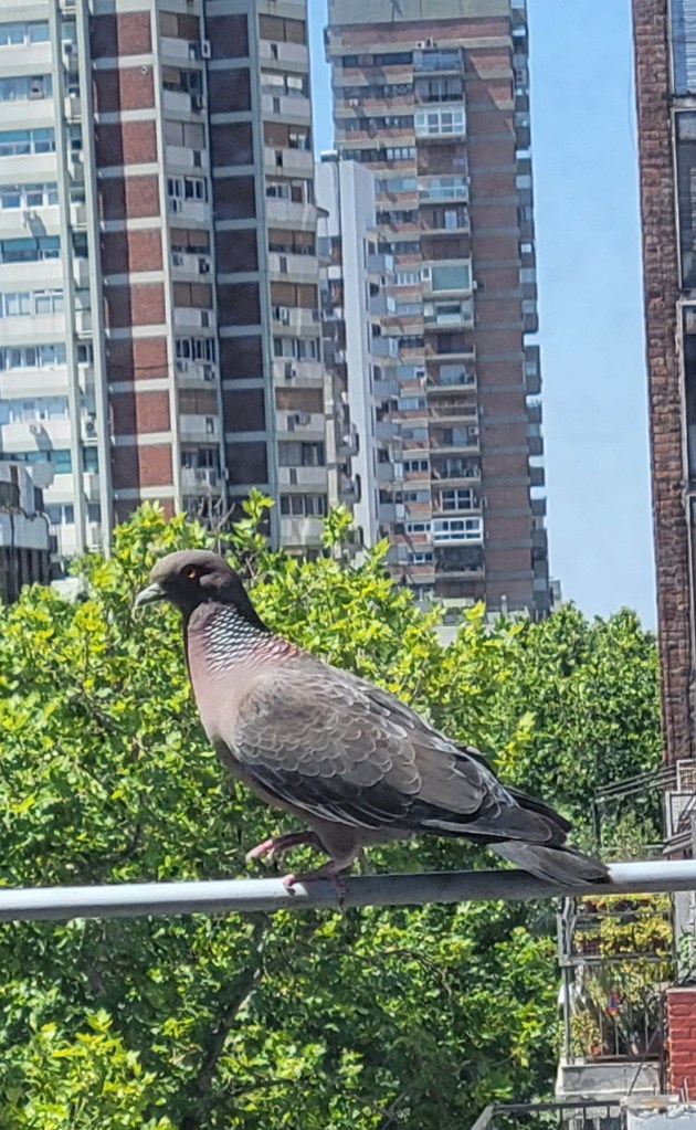 Entre las cosas que no me gustan de esta ciudad me olvidé de mencionar a las palomas y justamente hoy vino una al balcón con un reclamo de atención 🙂 A Juzgar por el tamaño parecía un pavo para Thanksgiving 😉