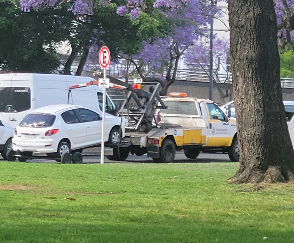 No se en cuántas ciudades del mundo una grúa puede llevarse tu auto porque está mal estacionado. Me pasó un par de veces y la sensación de ir a buscarlo y que no esté en el lugar donde lo había dejado fue muy fea. Y lo peor es que no sólo pagas la multa sino también el acarreo del auto, como si alguien le hubiera pedido al señor de la camioneta que se lo lleve. Mi solidaridad con el dueño del Peugeot blanco.