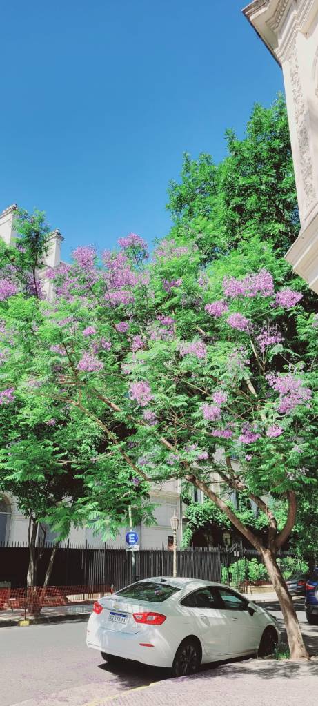 A few years ago, on a trip, someone asked me which was my favorite place in Buenos Aires. I answered that it was very difficult to choose because being such a big city there are several, but as she insisted I chose the Avenida del Libertador near where the ACA is 😉 On this avenue there are some beautiful buildings with a very Parisian vibe… especially beautiful place at this time of the year with the jacaranda trees in bloom.