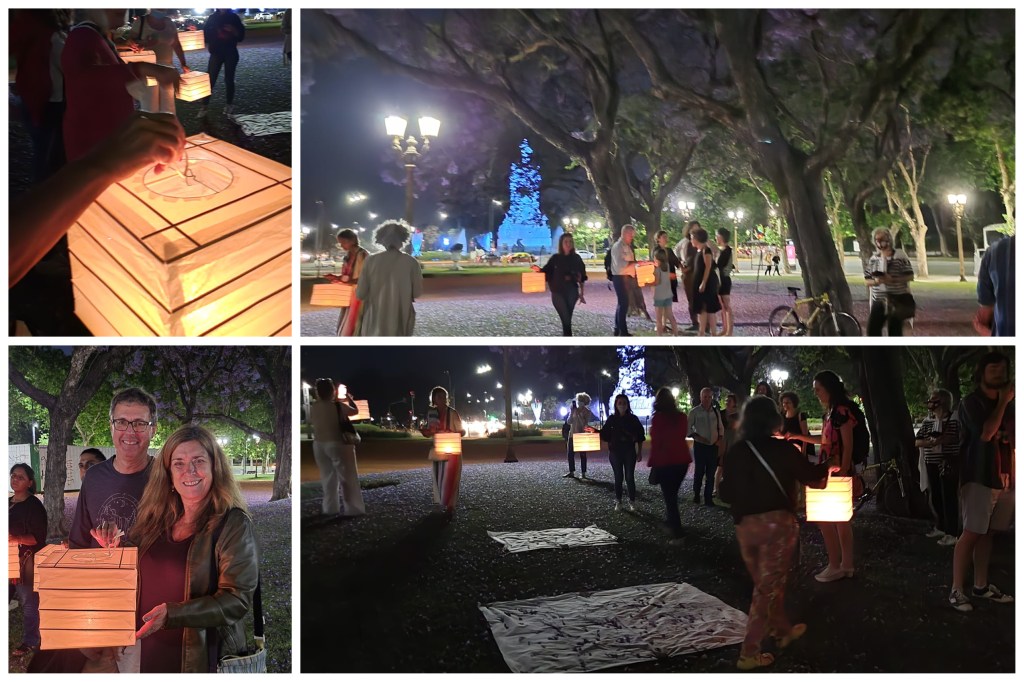 On Instagram I like to follow accounts that bring me something, and Karina with @historiasenverde was one of my favorites because she was showing me the trees of Argentina; both those of Buenos Aires and Tucumán; while I was in the United States. On Friday night the Hanami ceremony of the jacaranda tree was held in Palermo. It is a Japanese experience of observing the falling of the tree’s flowers in a natural way. The ceremony was in charge of @cristinacoroleu and they chose the night to do it. We were few, they prepared some paper lanterns, which made the event more intimate and they talked about Carlos Thays