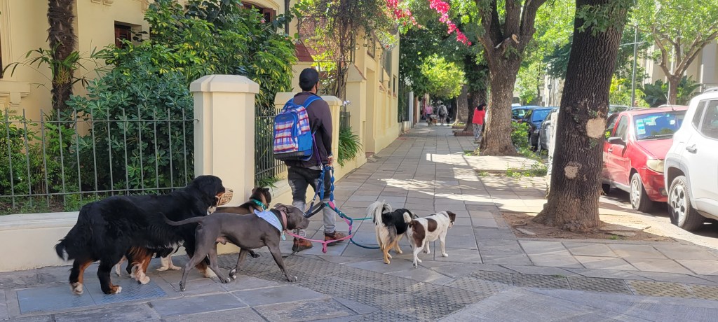 Vivir en otra parte y viajar hacen que las cosas que yo creía que eran naturales no lo sean en otros lugares. Algo característico, al menos en algunos barrios porteños, es ver paseadores de perros y es por eso que puse mi ojo y cámara sobre ellos, porque hacía mucho que no veía este fenómeno 😉