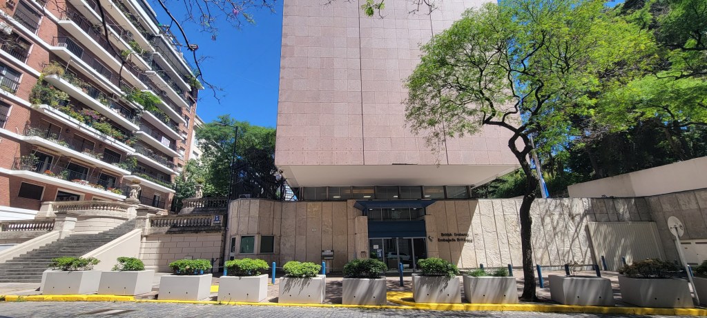 Caminando me encontré con la Embajada Británica (guiño para mis amigos ingleses) ubicada en el Palacio Unzué en uno de los barrios más exclusivos de Buenos Aires llamado La Isla. Todos los edificios alrededor tienen una impronta muy distinguida que vale la pena ir a mirar y fotografiar.