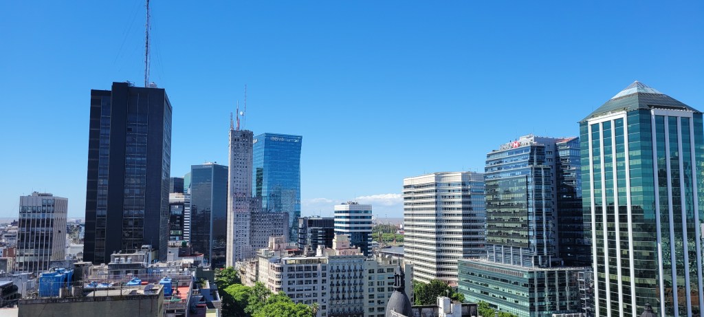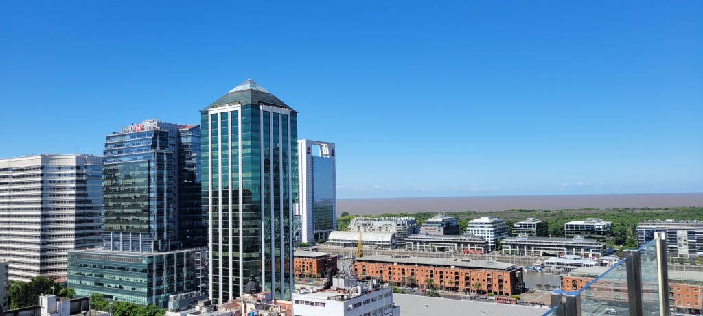I have to confess that I don’t like to go downtown because in general the reason is to have to do the most boring errands. However, in one of those eternal waits (that we Argentines know too well 😦 ) I remembered that in the Comega Building, there is a place called Vuelta Abajo with a terrace on the 15th floor overlooking the Rio de la Plata and that’s where we went. As you can see the day was perfect to be outside, take pictures and why not drink a torrontés salteño 😉