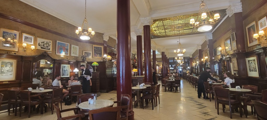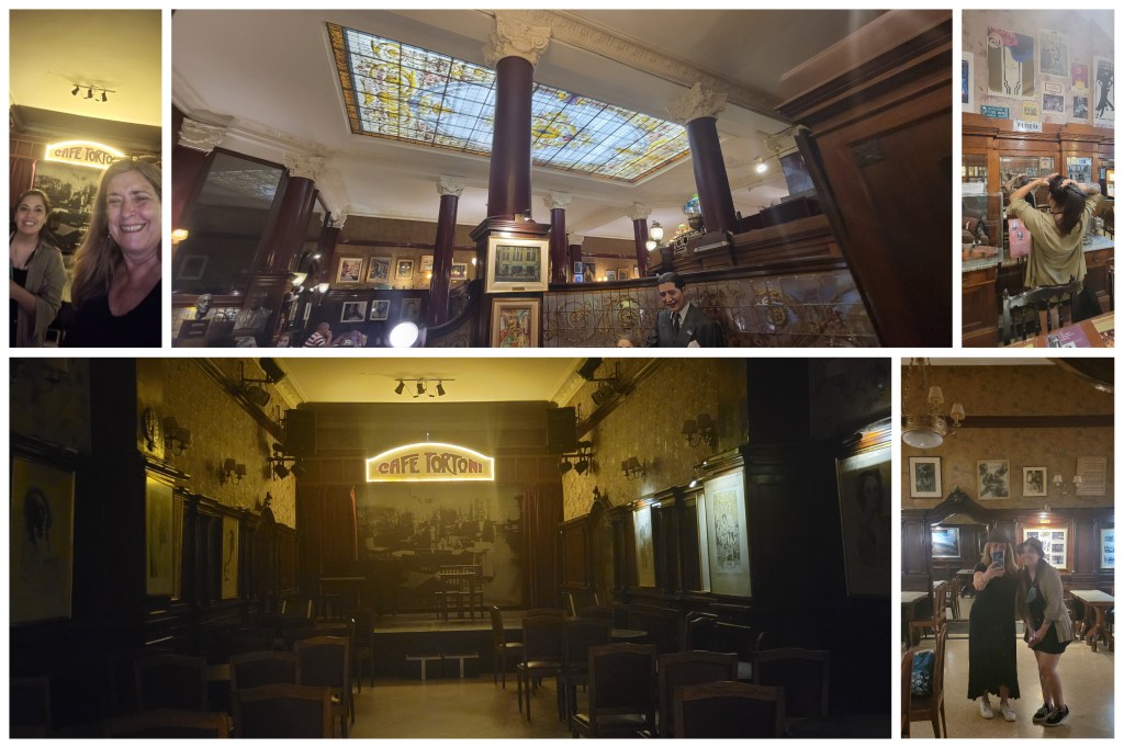 Hoy Ceci visitó por primera vez el Tortoni (fundado en 1858) y en mi caso había ido varias veces pero nunca había estado en la parte trasera con un pequeño teatro, una sala que antes fue una peluquería y otro espacio con mucho arte que recuerda a un Buenos Aires de otra época. Algo también para destacar fue la excelente atención de Miguel y Matías, soy una convencida que las personas son las hacen a la calidad de los lugares 😉