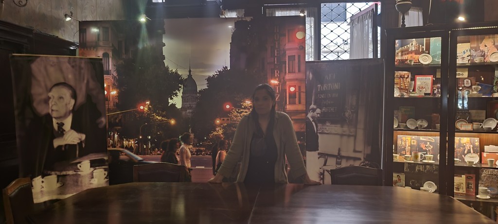Hoy miércoles 2 de febrero teníamos planeado nuestro regreso a Estados Unidos, sin embargo la tormenta Landon cambió nuestros planes y ayer tomamos la decisión de quedarnos unos días más en Argentina. Lo interesante fue que a pocas horas de esos cambios Ceci Rodriguez, amiga y quien inauguró el ciclo Amigas y Amigos Artistas me envió un mensaje preguntándome si todavía estaba por Baires y entonces propuso ir al Café Tortoni @cafetortoni para reencontrarnos después siglos sin vernos 🙂