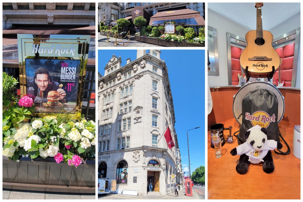 Estoy segura que el nombre Hard Rock Café te suena conocido de haberlo visitado o visto en alguna ciudad del mundo. Te cuento que el primero fue inaugurado en 1971 acá en Londres y como me despertó curiosidad lo incluí en una de mis caminatas y me encontré con una gran sorpresa: que tienen la hamburguesa Messi que claramente según la foto es un lio comerla 😉 . Me causó mucha gracia pero no me animé a probar una.