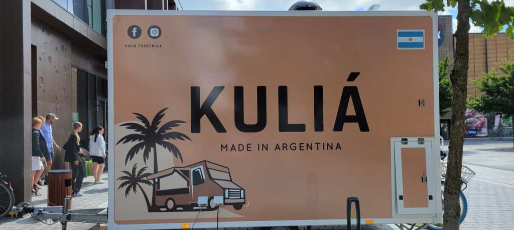 Siguiendo en la línea Argentina, caminando por Ålborg en Dinamarca, encontré un carrito de comidas con una bandera celeste y blanca. Lamentablemente estaba cerrado pero de pronto se abrió la puerta y allí apareció un joven argentino que me contó que una de las especialidades del lugar era el «sanguche de milanesa» pero como estaban cerrados me quedé con muchas ganas de comer uno. Me partió el corazón y me dejó hambrienta 🙂