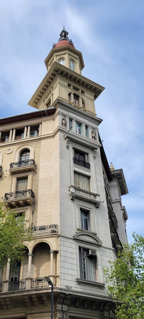 I ended the previous article by telling you that I entered the Palacio Barolo building to ask some questions about the night tours (which you will know a little more about soon 😉 ) and to admire the architecture of the first floor. On my way back to Avenida de Mayo, just a few steps towards the Congreso side, I found another building that left me amazed by its style and beauty: La Inmobiliaria which occupies a whole block and also has not one dome but two, which are twins and reddish in color. I feel that my photos are not good enough to show the details of the building, such as the statues.