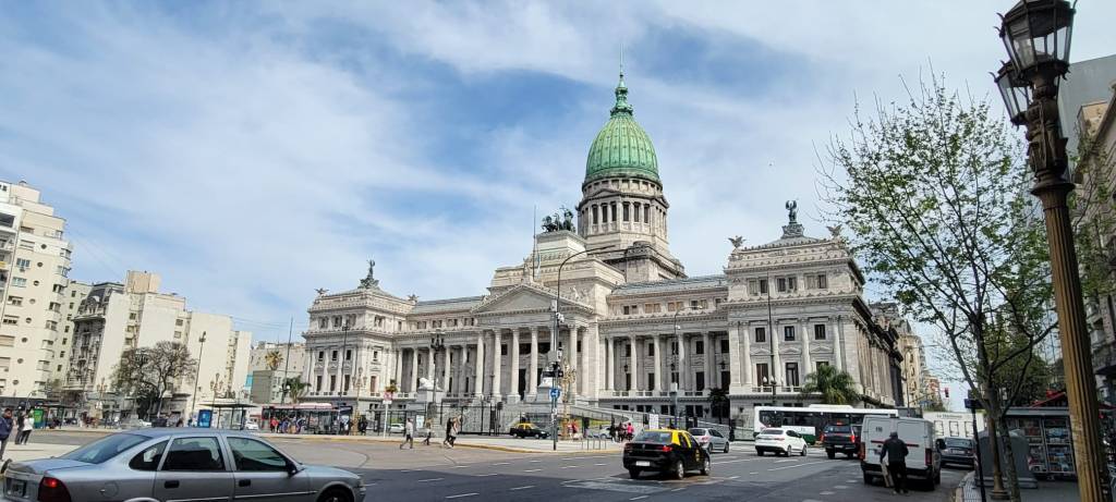 Ya desde la esquina de La Inmobiliaria puede verse el edificio del Congreso de la Nación, con su imponente cúpula de 80 metros de altura.