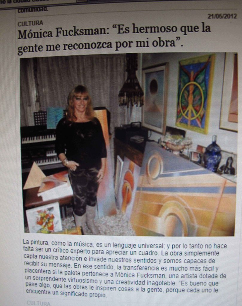 Le agradezco muchísimo a Mónica su tiempo y la alegría con que me transmitió su historia y como es una persona que inspira y siempre busca seguir experimentando. Les recomiendo que vayan a visitarla en alguna de sus exposiciones.