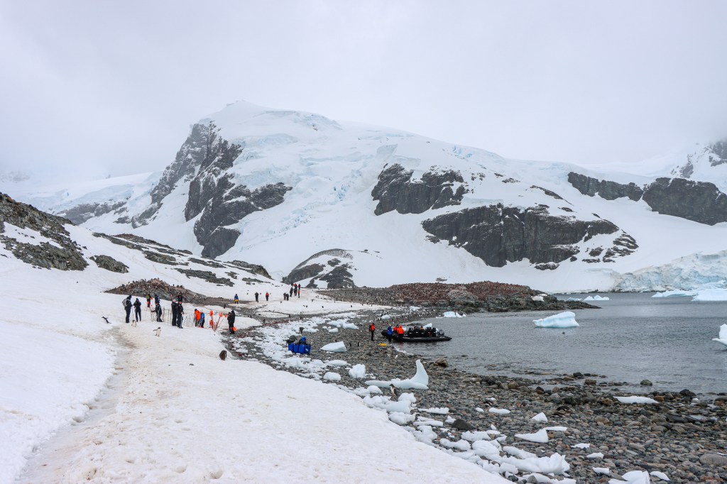 Getting off the cruise had different rituals, one of them was the clothing. It was very important to be warm, several layers of clothing to finish with the warm jacket, the raincoat and obviously the life jacket. Moving around was not easy, somehow we all looked like penguins as we walked in a line along the paths marked for that purpose. For the excursions we were divided into groups with different departure times and another ritual had to do with footwear. We would go down to put on our boots and had to clean them very thoroughly before and after the walks down to the continent.