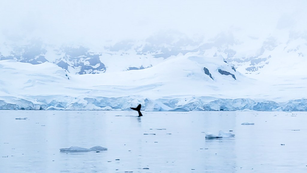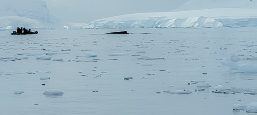 During our tour, someone from another zodiac alerted us to the presence of a whale in the area, and we all remained expectant and silent, waiting for it to appear.