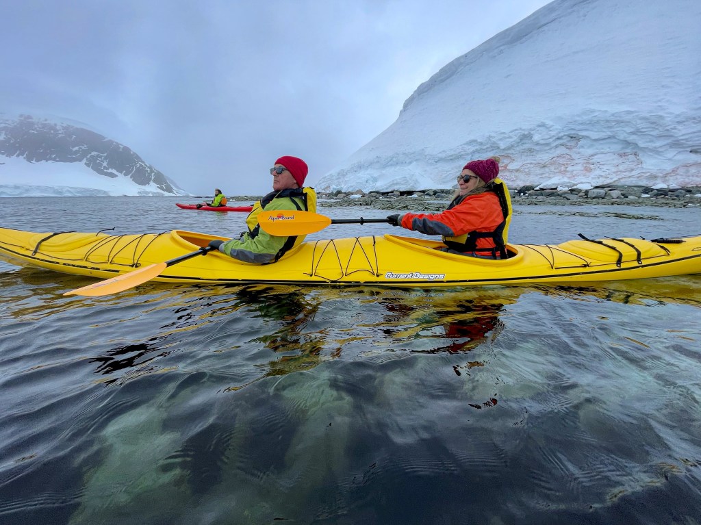 El buen clima era fundamental para poder salir a remar, subíamos a los zodiacs, nos alejábamos un poco de nuestro barco y luego con ayuda de los instructores, nos subíamos a los kayaks (cosa bastante sencilla) y ahí comenzaba la verdadera aventura 🚣‍♀️