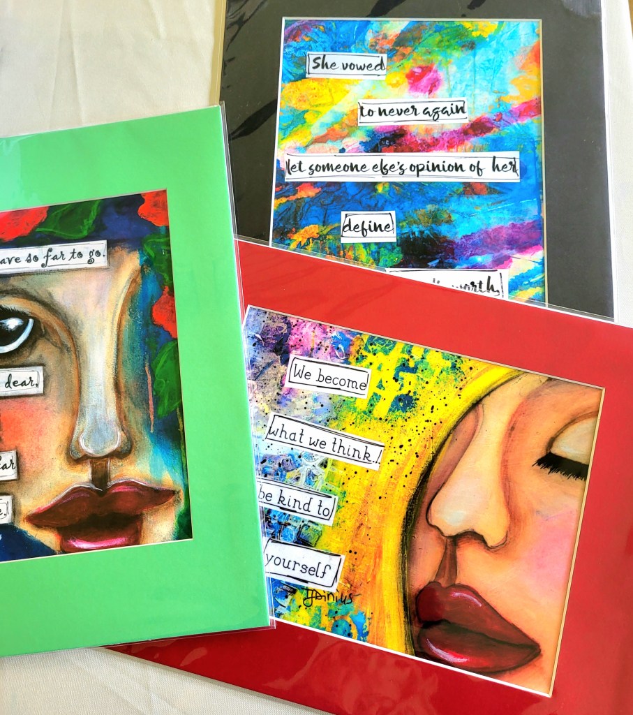 Luego de estar alejada de la vida creativa durante 15 años, empecé a pintar de nuevo en 2014. Mis primeros intentos en diseño y pintura distan mucho de lo que hago ahora. Aunque mis primeras obras no fueron espectaculares, se vendieron. La confianza que me dio vender mis primeras obras encendió un fuego en mí. Seguí pintando y empecé a añadir mis propias citas a las obras. La fusión de arte con mis palabras fue un éxito. Vendo mis obras en 20 eventos artísticos con jurado cada año y también doy clases de arte, vendo al por mayor mis tarjetas de felicitación e imanes y además hago consultoría empresarial.