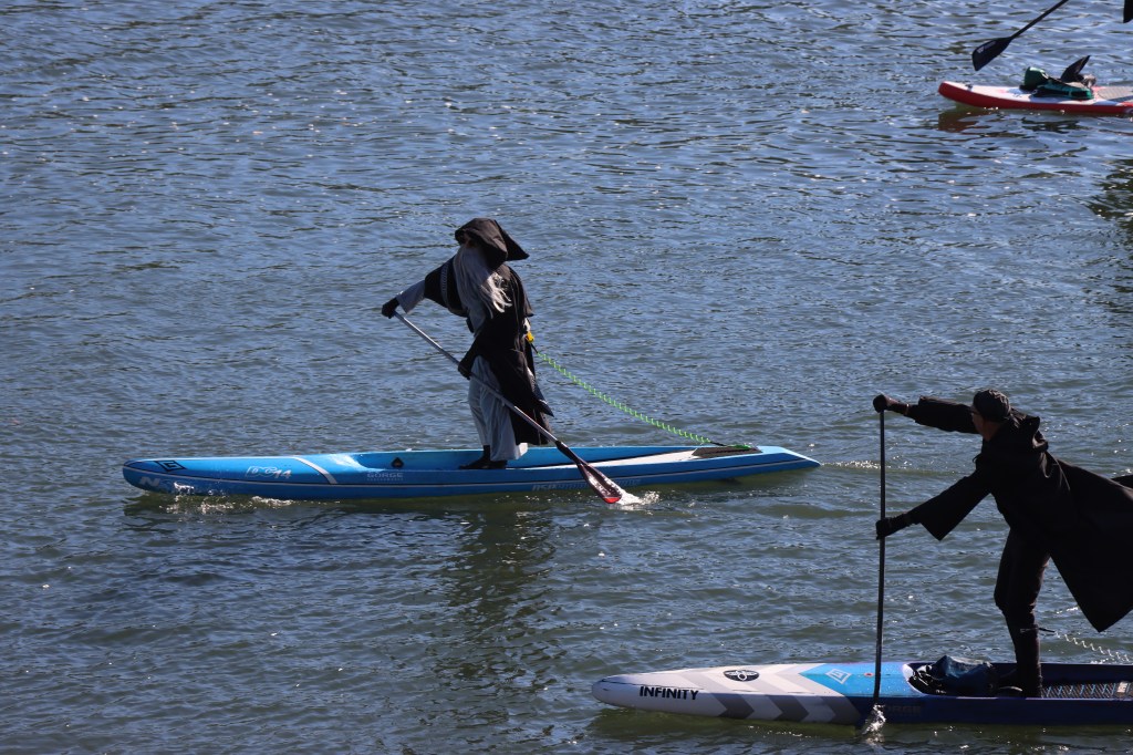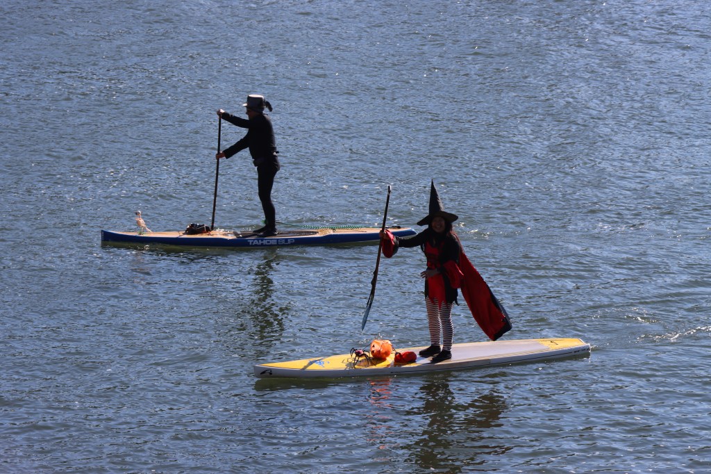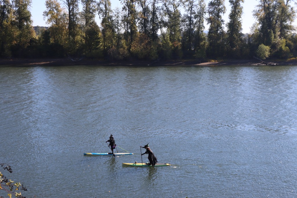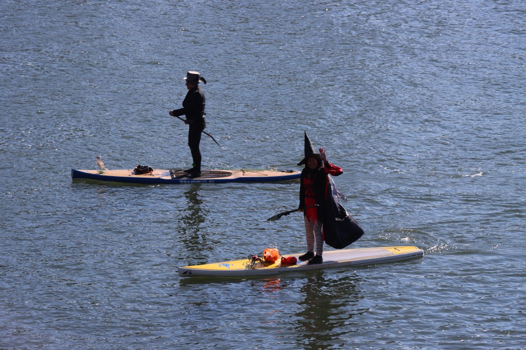 Through one of the newsletters I receive, I found out that at the end of October there was an activity where people in witches’ costumes and on their paddle boards would go along part of the Willamette River in Portland. Needless to say, I was very excited to save the date to see what the event was all about, which already seemed very original to me 🙂