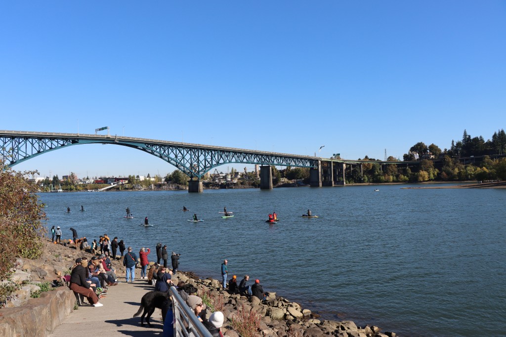 A través de alguno de los newsletters que recibo, me enteré que a fines de octubre se realizaba una actividad donde personas con disfraces de brujas remando en tablas de paddle surf recorrerían parte del río Willamette en Portland. Demás está decir que agendé la fecha con mucha alegría para ver de qué se trataba ese evento que ya de por si me parecía muy original 🙂