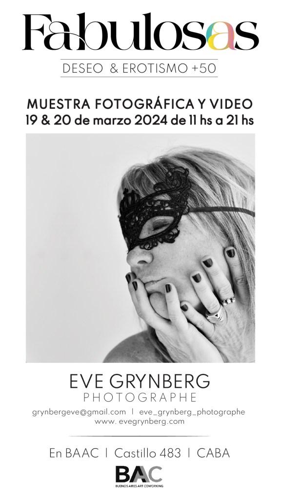 Podrás disfrutar de la muestra fotográfica de Eve Grynberg https://www.instagram.com/eve_grynberg_photographe/ y charlas a cargo de diferentes profesionales sobre salud, creatividad, finanzas, sexualidad, longevidad positiva, entre otros temas.
