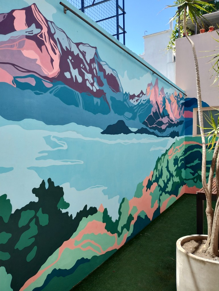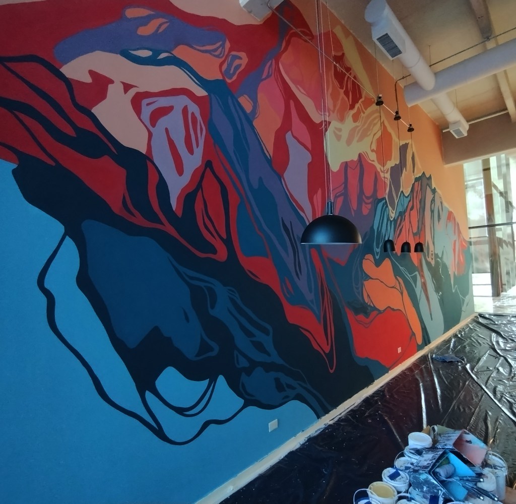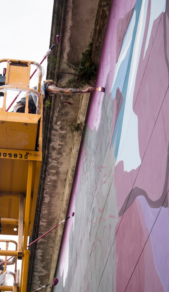 That mural combined the talents of Euge Petre with those of Alan Myers https://www.instagram.com/myersalan/ capturing Euge’s research on sacred Andean mountains coupled with ritual and shamanic elements along with Alan’s interest in researching the diversity of bodies.