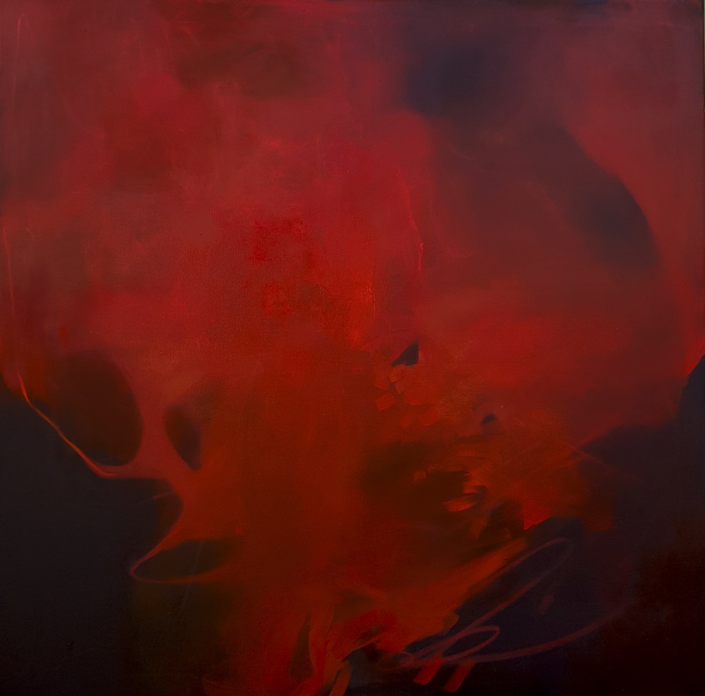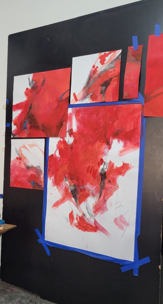 «Mi práctica principal es la pintura. La pulsión por el pintar me lleva a plantear de manera expresiva las primeras manchas en diálogo directo con mi cuerpo, pero luego requiero de un momento de calma y análisis para direccionar la intención.
