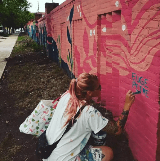 Euge me contó que siempre se dedicó al arte. Estudió Museología, dibujo, pintura y escenografía en el Teatro Colón. Ella considera que esos fueron sus primeros pasos para realizar obras a gran escala, algo que siempre le gustó y con ese conocimiento comenzó a pintar, desde hace muchos años, murales. Los primeros fueron para marcas comerciales en el barrio de Palermo y a medida que fue pasando el tiempo encontró su voz y un estilo propio para los mismos.