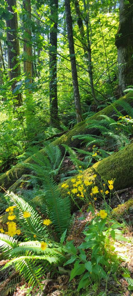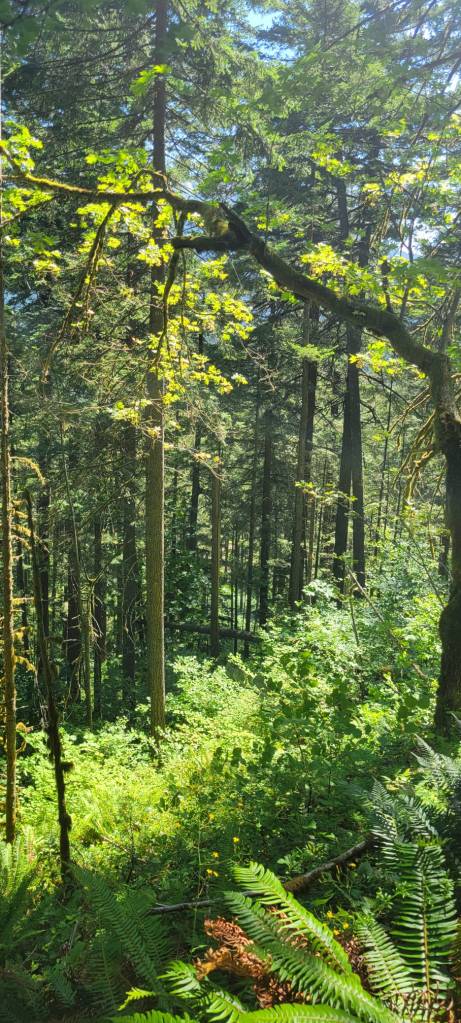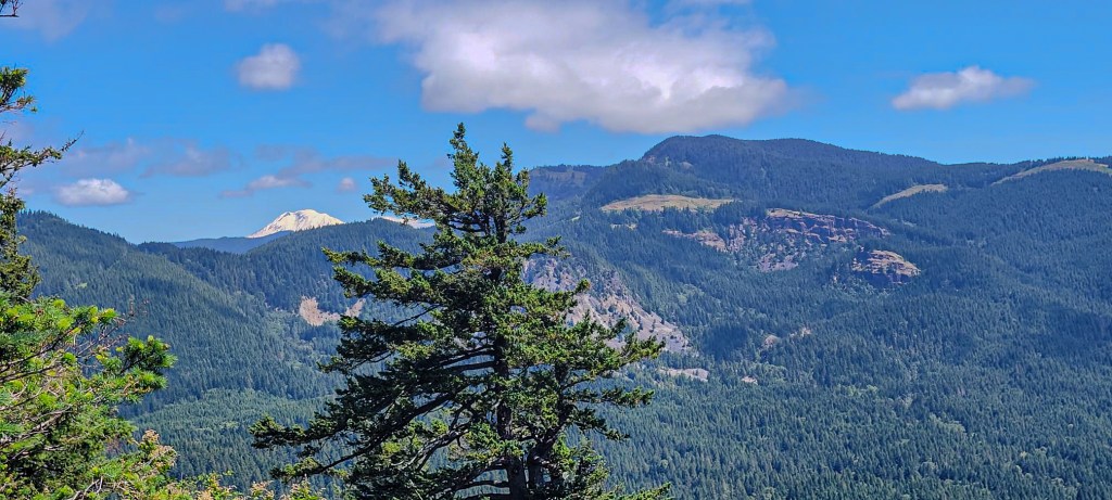The trail borders the mountain and when you reach the top the views are incredible: part of Mount Adams, Beacon Rock in the distance, much of the Columbia River and the Oregon Mountains on the other side of the river among other beauties.