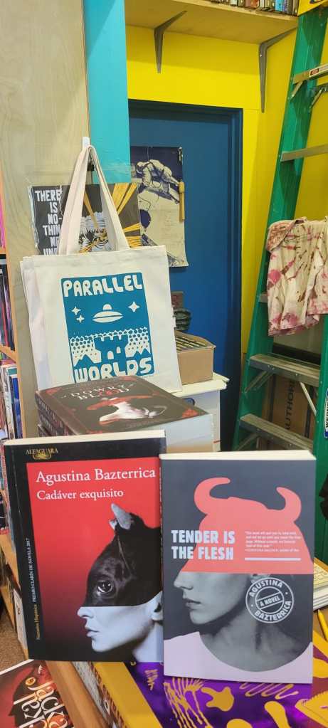 Al comentarle que era Argentina me mostró libros traducidos al inglés de «Nuestra parte de la noche» (Our share of the night) y «Cadáver exquisito» (Tender is the flesh) de Mariana Enriquez https://www.instagram.com/marianaenriquez1973/y Agustina Bazterrica https://www.instagram.com/agustinabazterrica/ respectivamente. Curiosamente también contaba con los ejemplares en español.