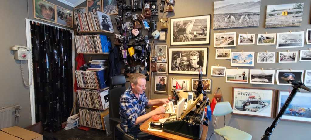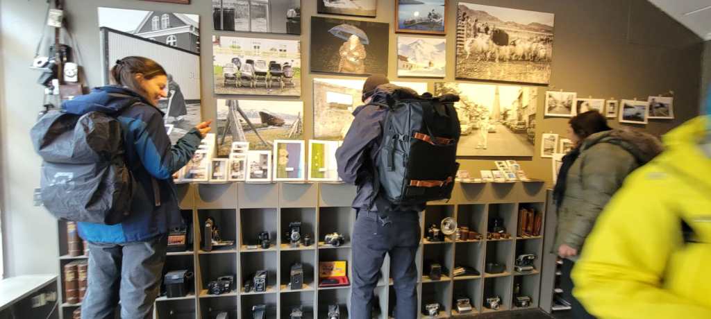 Ari Sigvaldason, a quien tuve la suerte de conocer en mi visita, es un apasionado de la fotografía tomada con película, un arte que mantuvo vivo a lo largo de los años. Su obra, adorna la vidriera del local como también las paredes del interior. Ari tiene la habilidad de captar la esencia de los paisajes y la vida cotidiana de Islandia, con un enfoque especial en la luz y los detalles de estos paisajes.