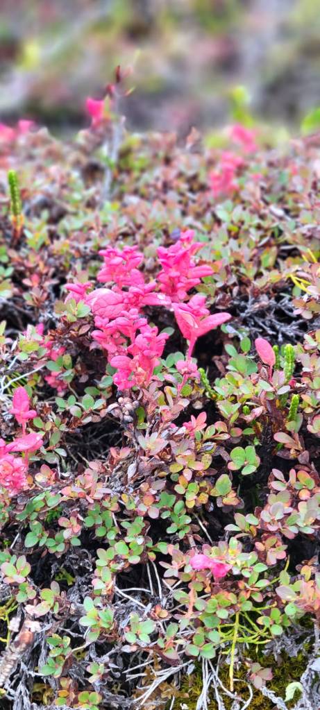 Entre las sorpresas de este viaje, descubrí algo que no esperaba: una abundante vegetación. Montañas que no están cubiertas de nieve o hielo todo el año, y pequeñas flores y plantas (tundra) que, en otro contexto, habrían pasado inadvertidas pero que en este ambiente me llenaron de emoción aunque parezca exagerado.