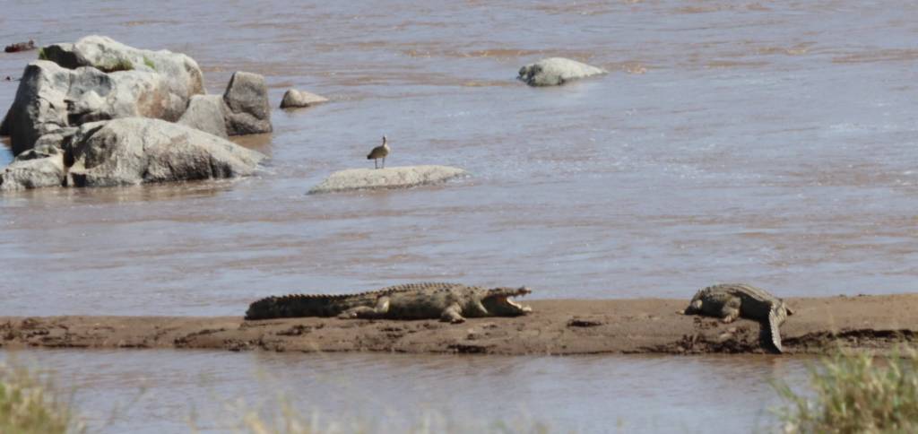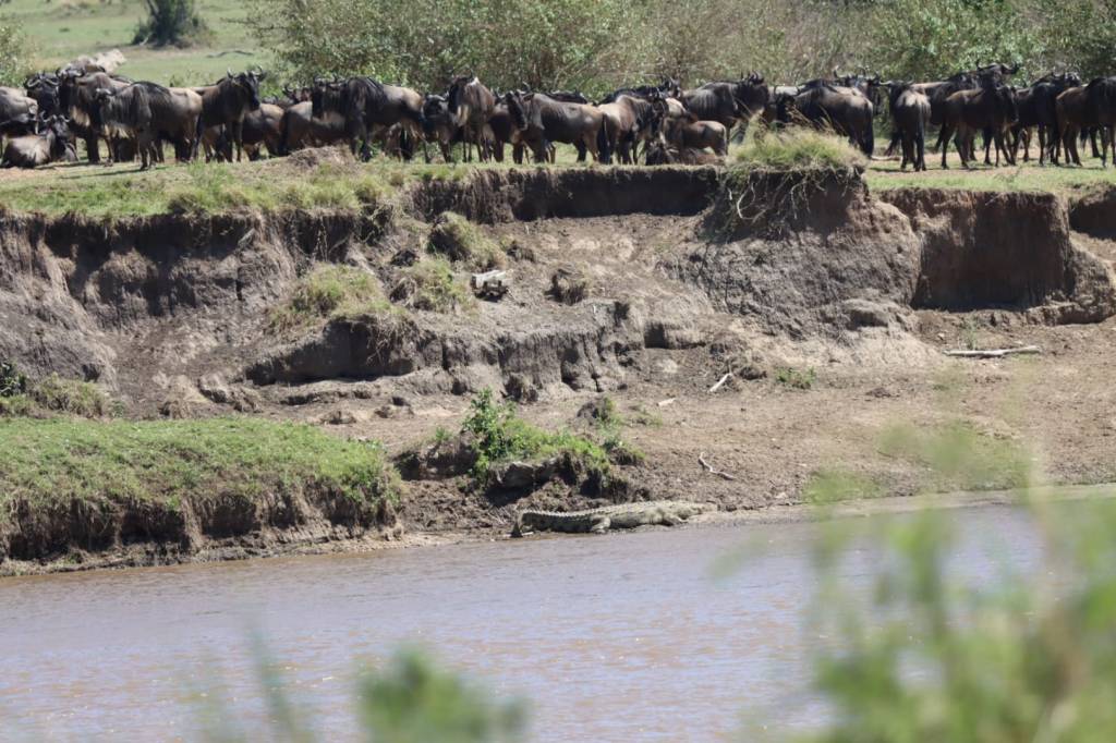 The scene was full of drama. Some wildebeest moved back and forth, as if evaluating the best spot to cross, although they almost always follow the tracks of those who have crossed before. In this back and forth, the tension was increasing: the crocodiles lurked, motionless, waiting for the right moment to attack.