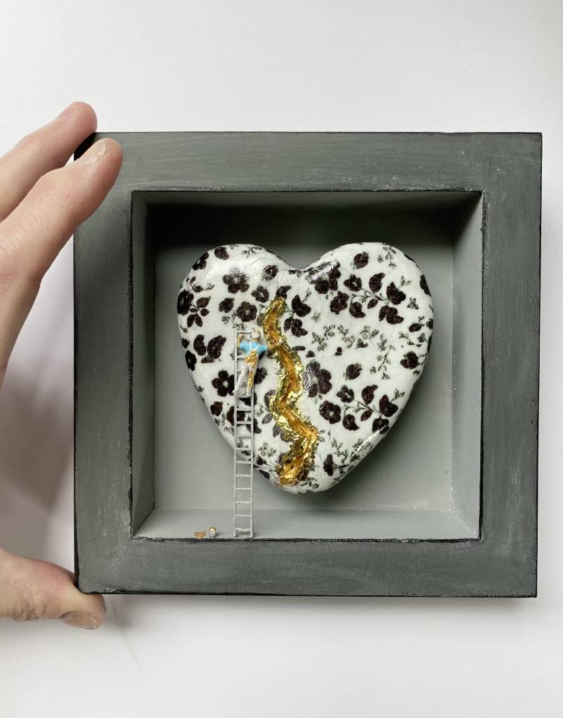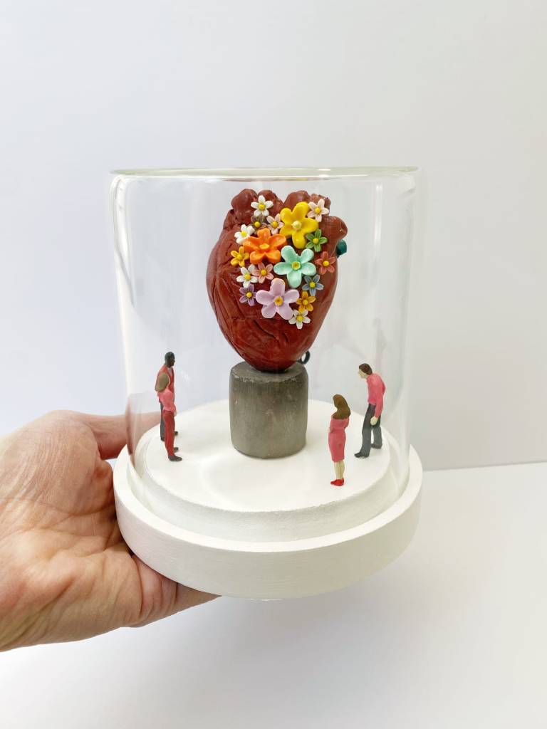 LB: The concept always comes first, sometimes even when I’m asleep. I keep a notepad by my bed and write everything down. After I’m clear on what I want to say and what kind of miniatures I want to use, the form comes into focus. Sometimes, I create multiple forms for a single concept. Pocket galleries come in the form of cards and miniature shadow box dioramas.