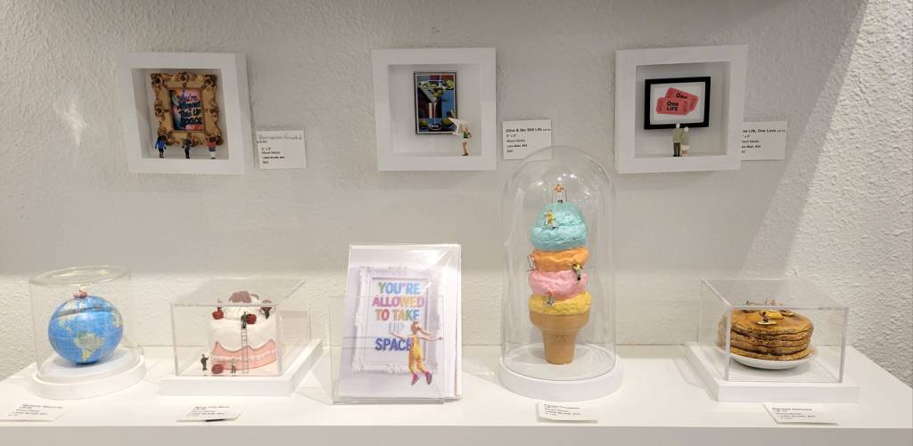 LB: The very first pieces that came out of nowhere were the donuts with the miniatures. At first, I was saying, “What in the world?” to myself, and then it just became fun. All the whimsy launched from there, and the ideas got bigger, involving more mediums. It’s all so much fun.