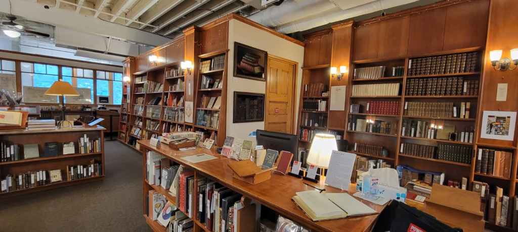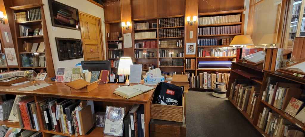 Un rincón especial es la Rare Book Room, una sala dedicada a libros raros, primeras ediciones, posters, mapas antiguos, máquinas de escribir entre otros objetos. Se accede en pequeños grupos y recorrerla es como entrar en un pequeño santuario literario de otra época.