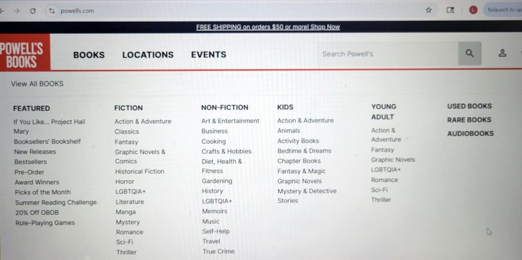 For over a year now, I have been visiting and writing about independent bookstores in different places, and if there is one that deserves a chapter of its own, it is Powell’s City of Books https://www.instagram.com/powellsbooks/ which opened its doors in 1971.